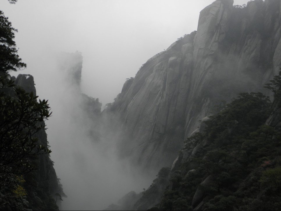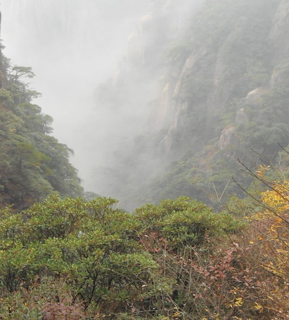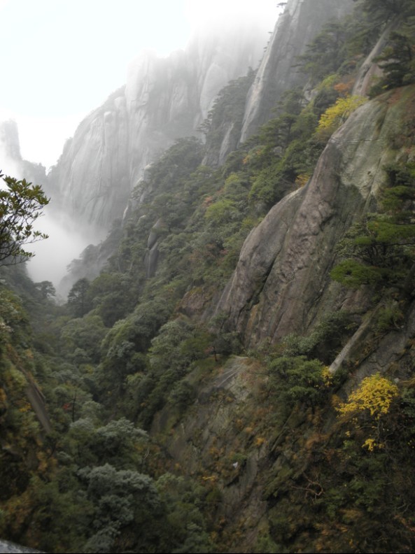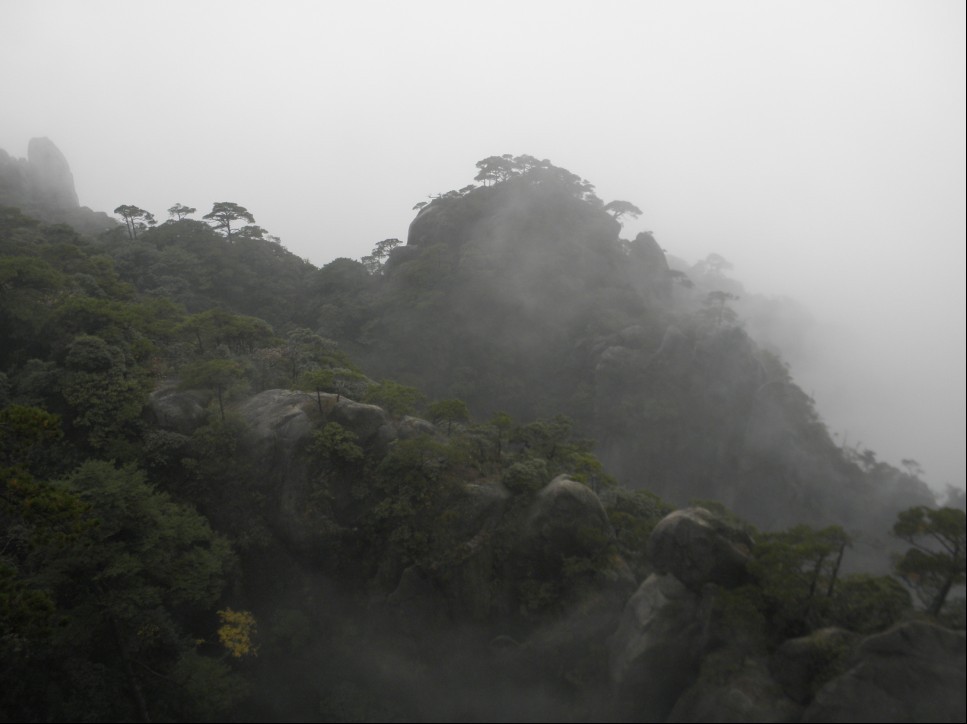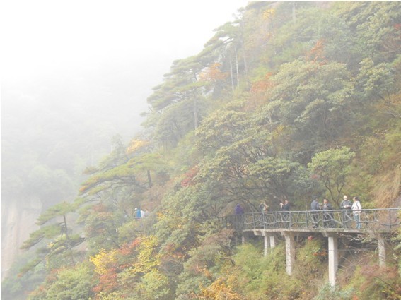 ????第二天我們游覽了江西省著名旅游景點(diǎn)-三清山。位于江西省上饒市境內(nèi),總面積有229平方公里,它由十個(gè)大的風(fēng)景區(qū)組成,其中有四個(gè)風(fēng)景區(qū)尤為著名,它們是三清宮景區(qū)、玉京峰景區(qū)、西海岸景區(qū)和南清園景區(qū)。據(jù)說(shuō)三清山一年中大約有200多個(gè)霧天,云霧使千山萬(wàn)壑濃淡明滅、變幻莫測(cè),尤其在日出時(shí)分更是群峰競(jìng)秀、氣象萬(wàn)千。我們這次也沒(méi)有例外,剛開(kāi)始天公盡然還下起了淅瀝小雨,坐上隧道,因?yàn)樵旗F繚繞,山完全被一層白紗遮住了,就像羞澀的新娘,將自己蓋在了頭巾里面,讓我們無(wú)法看到她的美貌。盤(pán)旋在懸崖峭壁間的高空棧道為我們觀景提供了極大好處,因?yàn)椴槐胤皆綆X,而你能如履平地的在山間信步游走。還好天公還是眷顧我們的,上山后雨不下了,就是濕氣非常的濃,三清山的面貌時(shí)隱時(shí)現(xiàn)的出現(xiàn)在我們眼前,當(dāng)郁郁蔥蔥的林木和奇峰怪石展露在我們眼前時(shí),心情無(wú)比的開(kāi)闊。真是一山一景,每座山都有各自的特色,黃山給我的感覺(jué)是氣魄,真是如詞所提:“一覽眾山小”;而張家界的山又是因奇特著稱,一個(gè)個(gè)石柱拔地而起,不得不感慨大自然的偉大力量;而三清山,給我的感覺(jué)更女性化,有種少女般的羞澀和秀麗。
