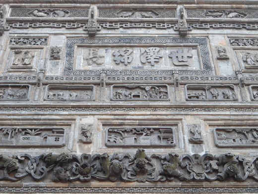 ??? 看完石窟,我們向距離不遠(yuǎn)的一個(gè)建筑群部落進(jìn)發(fā),那里是當(dāng)?shù)貫榱吮4嬉恍┐硇越ㄖ?,將原散落在各鄉(xiāng)村的有代表性的建筑物搬遷到一起,既保留了建筑物的原貌,也讓一些喜歡了解徽派建筑文化、磚雕建筑的那些游客一飽眼福。看著這些栩栩如生的花卉、人物、鳥(niǎo)獸,都包含著主人對(duì)家族的美好愿望,什么“龍鳳呈祥”、“三陽(yáng)開(kāi)泰”、“麒麟送子”、“仙女祝壽”、“福祿同春”等等,無(wú)不體現(xiàn)出中國(guó)古代的文化底蘊(yùn),心中也不免會(huì)產(chǎn)生一種惋惜,因?yàn)檫@樣的民間藝術(shù)正逐漸淡出我們的視線,其實(shí)這也是中華民族的一大寶藏,要是能將這些能工巧匠地技術(shù)保存下來(lái),那要比保存那建筑更有意義。