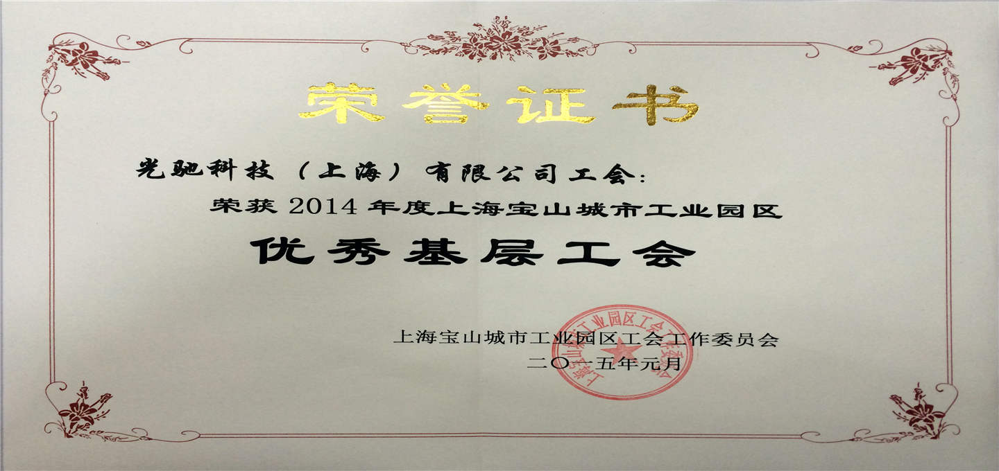 榮獲“2014年度寶山城市工業(yè)園區(qū)優(yōu)秀基層工會(huì)”
