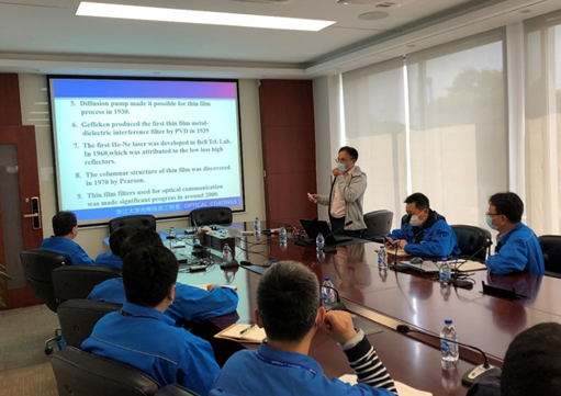 聘任儀式結束后,沈顧問為與會各位領導作了光學薄膜應用及未來發展趨勢的講座,并與各位領導進行了技術交流和探討。