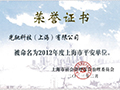 榮獲“2012年度上海市平安單位”